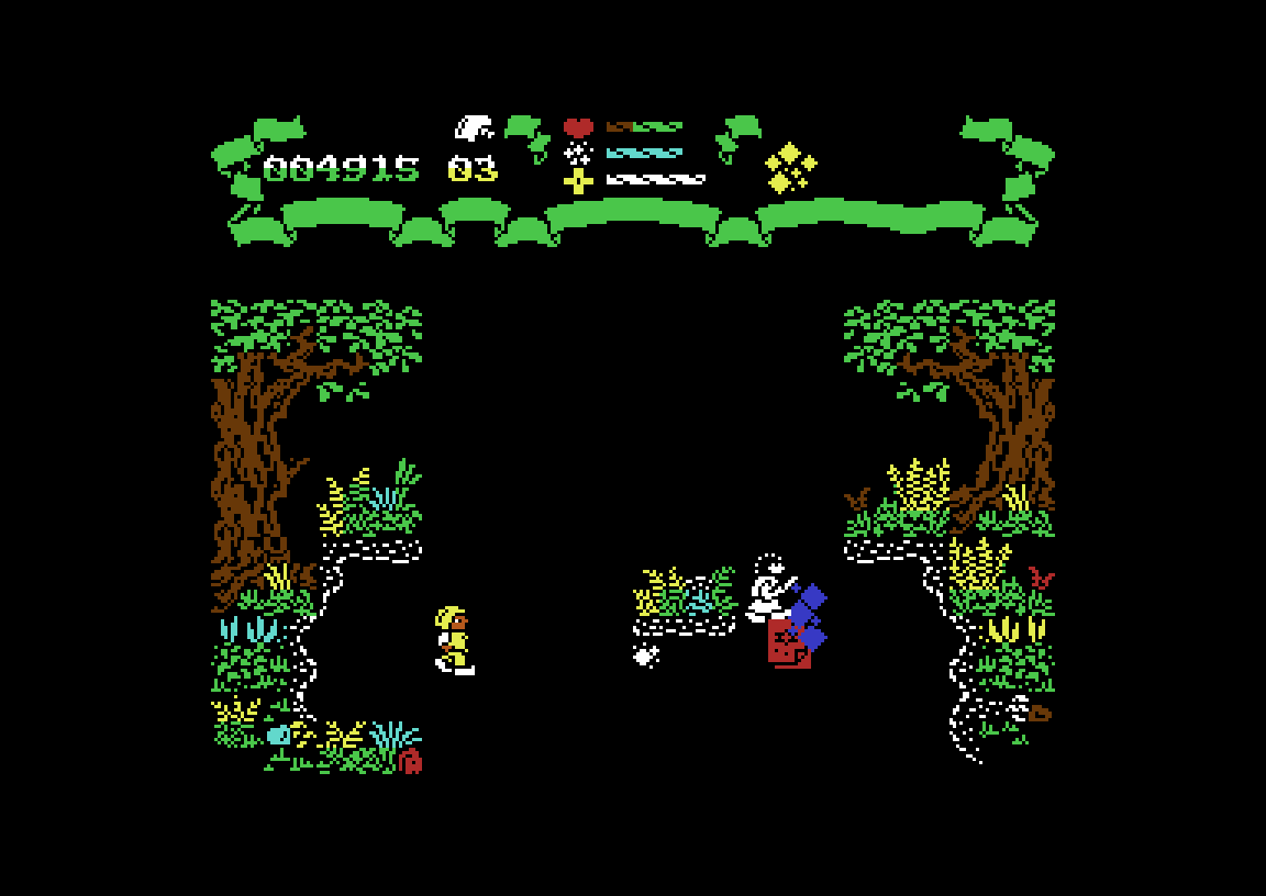 Jeg må imidlertid si det er artig å titte på kartet over spillets verden, som du kan finne her. Det slutter aldri å imponere meg hvor mye smarte utviklere fikk presset inn i de begrensede minnebrikkene til maskiner som Commodore 64. Og tenk på spillerne som faktisk klarte å lage papirkart av det her! Galskap!