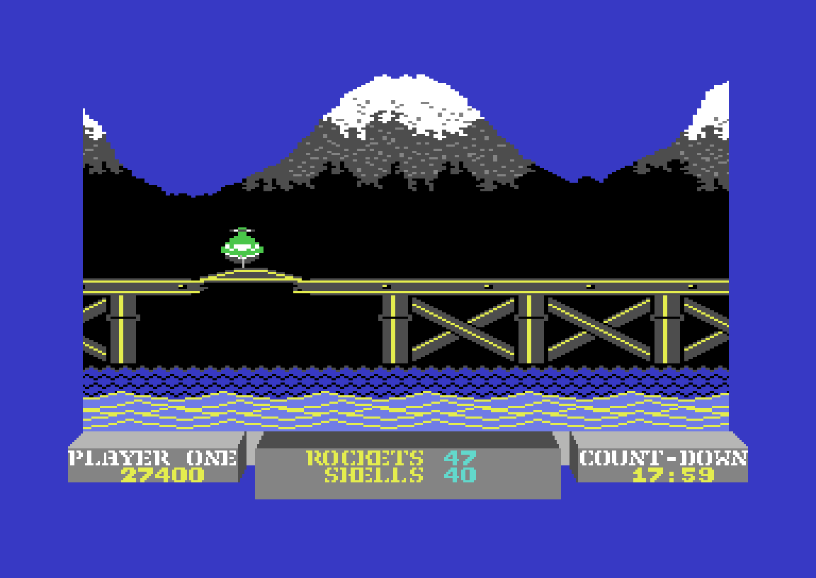 Her har vi et spill jeg har gode minner fra – men ikke fra tiden da jeg faktisk hadde Commodore 64 som hovedplattform. I stedet må vi litt i overkant av 20 år tilbake. Da brukte jeg brukte mye tid på å utforske Commodore 64-spill som opprinnelig hadde gått meg hus forbi, og dette var en av perlene jeg oppdaget. Jeg var heller ikke alene om å oppdage spillet, for jeg fikk lurt en kamerat som ofte var på besøk for å spille PC-spill (primært av den turbaserte, strategiske typen) til å spille det med meg – og det jeg merker nå er at Battle Valley var litt artigere i flerspiller enn alene. Jeg mistenker også at da vi spilte det i gamle dager, jukset vi med tidsfristen.