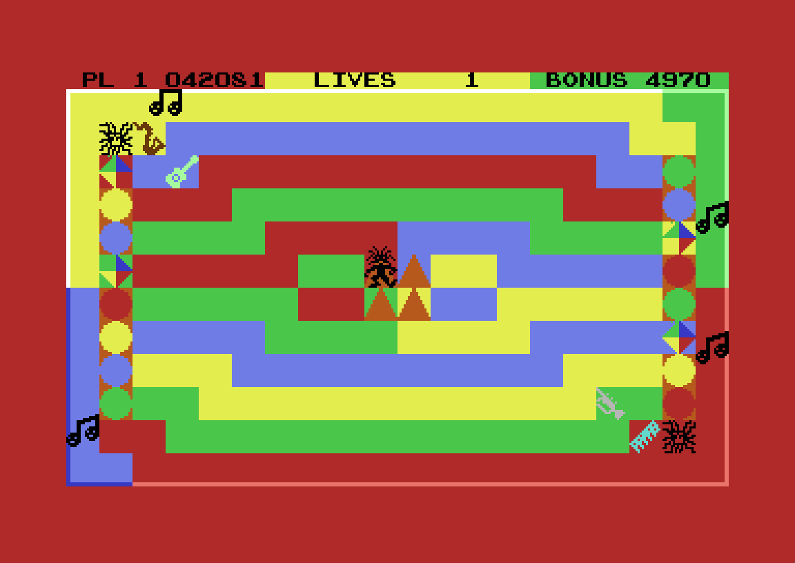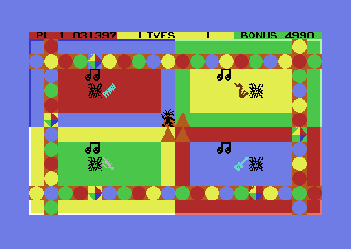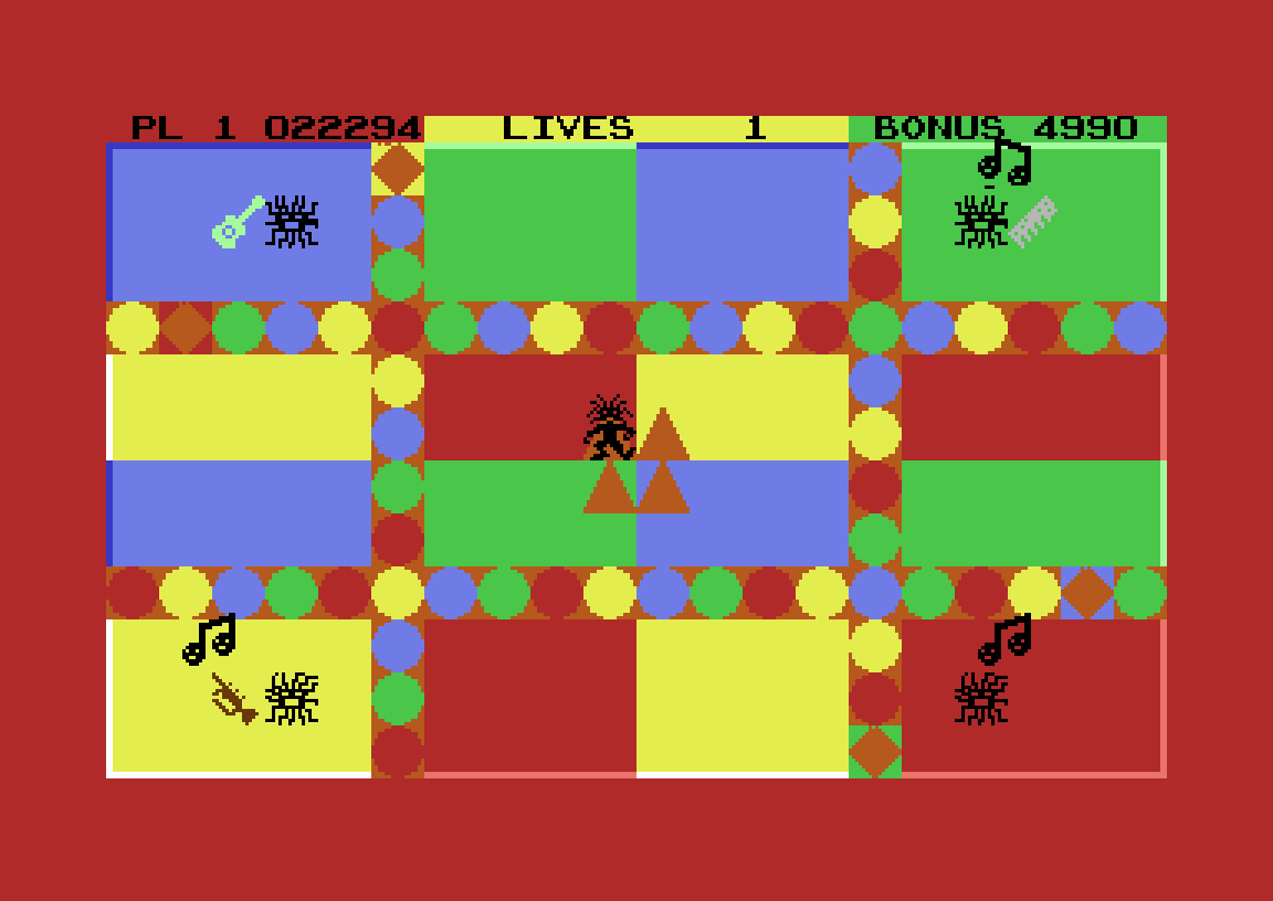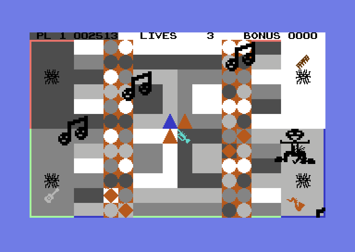 Med meg så langt? Jeg vet ikke hvor viktig det er, egentlig. Poenget er at det krever en del planlegging og timing å komme seg dit du vil på spillbrettet. Så er da målet å finne alle de fire instrumentene på brettet, og plassere dem på de forhåndsdefinerte plassene deres. Så er det selvsagt masse monstre rundt på brettet, som enten skader deg, rapper instrumentene du har plukket opp eller ødelegger dem slik at du må hente dem på nytt.
