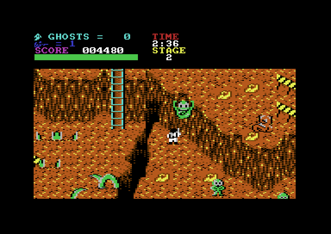 Ah, og jeg må jo nevne Jeroen Tels herlige låt som fungerer både som tittelmelodi og bakgrunnsmelodi så lenge du husker å skru musikken på før du starter å spille. Dette er klassisk Commodore 64-musikk, og det er låter som dette som gjør at jeg holder Commodore 64 høyest av alle 8-bit-plattformene hva musikk angår.