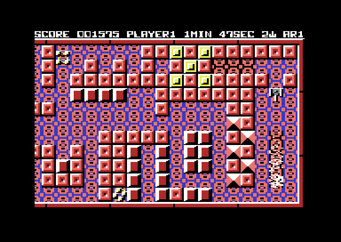 Du har to minutter på deg på hvert brett, så det lønner seg å finne den mest effektive måten å kvitte deg med kassene på. I tillegg må du håndtere forsvarsdroider som surrer rundt. De kan ikke drepes, men du kan uskadeliggjøre dem i noen sekunder ved å skyte dem. Dette er noen ganger risikabelt i seg selv, for du kan ende opp i en situasjon der du låser deg selv inn i en blindvei ved å skyte en fiende som står mellom deg og dit du vil dra (du kan dytte dem ved å skyte dem, men om de har ryggen mot veggen i et kryss må du bare vente til de våkner opp igjen og forhåpentligvis drar en annen vei enn mot deg). Siden du ikke kan skyte gjennom dem, kan de også ende opp med å blokkere kassene du egentlig skal bruke tiden på å få bort.