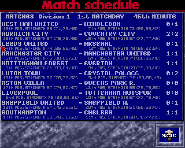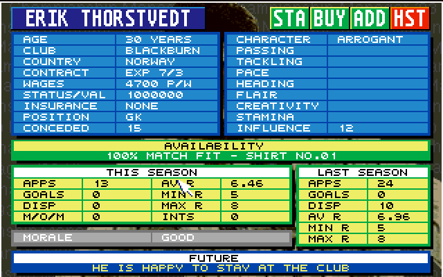 Selv om dette er i spillseriens spede begynnelse ser man her detaljer som følger med videre frem til i dag. Spesielt spillerverdiene og taktikkvinduet bringer konturene av et ørlitelite smil på leppene til Retrogamingpappa.