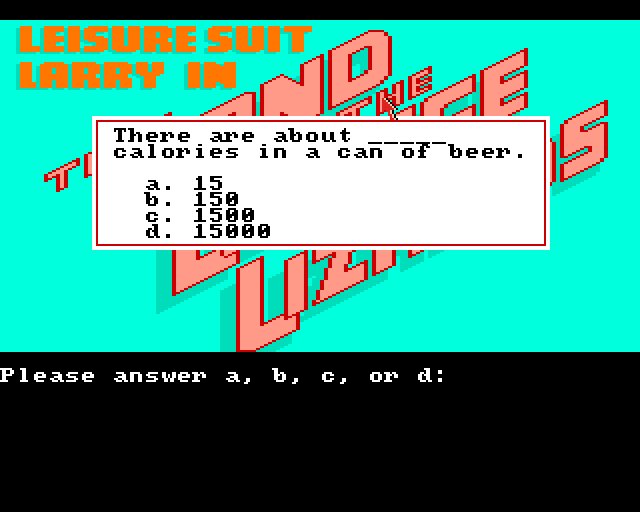 Larry. Dette bringer jo tilbake morsomme minner fra barndommen. Jeg tenker på PC-versjonen og to små barn som prøver å bevise en gammel 386 at de er gamle nok til å spille spillet.