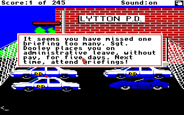 Police Quest er et spill som kanskje mange mener hører hjemme på PC. Jeg er kanskje enig i det, men dette er en Amiga-konkurranse, og dette er et spill som ble gitt ut på Amiga. Retrogamingpappa husker egentlig bare én ting. Det er at du må sjekke bilen godt før du drar ut på kjøretur. En greie med Sierra-spill er kanskje også at terskelen for å dø, og starte på nytt igjen er ganske lav.