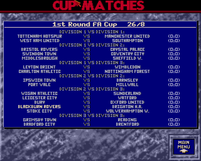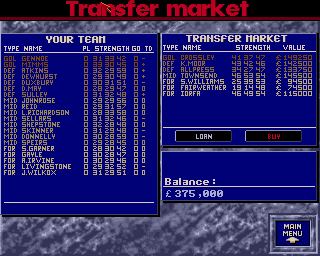 Oppstart av et nytt spill tar laaang tid. Jeg tuller ikke når jeg sier det tar cirka 10-15 minutter å starte opp et nytt spill. Det er grunn nok i seg selv til at Retrogamingpappa ikke ga opp etter de første tre kampene. Oppsettet i spillet er kjent for veteraner av Champ/Football-manager. Du overtar et lag, kjøper og selger spillere, setter opp taktikken, og skal prøve å vinne flest mulig kamper. Etter å ha tatt over Blackburn er det jo vanskelig å se hvordan dette laget kan bli noe bedre, men tre kamper ut og 0 poeng. Ikke en god følelse.