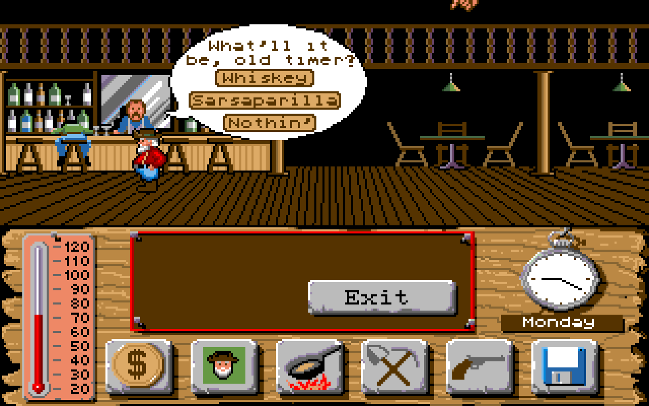 For å finne gruven, må du samle noen mystiske skattekartbiter, litt sånn som i Sid Meiers Pirates. Det er et rollespillelement her også, med at du må tjene penger på å vaske eller grave gull, passe på at du er hydrert nok (du kan fylle på vann i elva, eller whiskey i baren), og har fått tak i mat og utstyr til alle dine gjøremål. Tar du en tur innom sheriffen, så finner du også ut hvilke banditter som er i nærheten, og hvor mye du får for å fange dem.