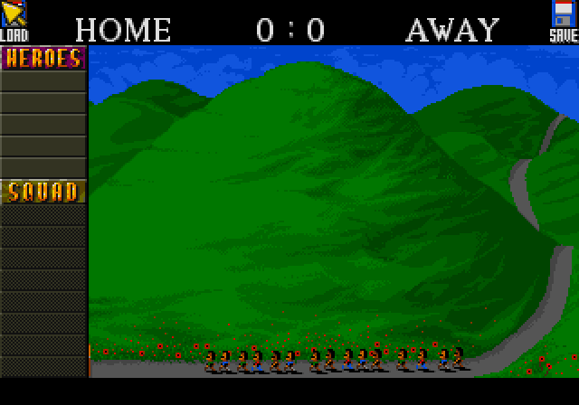 Men hva med Cannon Fodder? Du starter spillet med å se på en lang linje med rekrutter som er på vei til å verve seg i krigen mot fienden. Hvem er vi og hvem er fienden? Spiller ikke så mye rolle på 90- tallet hvem det var, de var jo bad-guys. Hvor mange Swarzenegger filmer starten med en samfunnsøkologisk dypdykkanalyse av de totalitære forholdene som ga oss svar på hvorfor fienden valgte å sloss mot helten? Ingen, tror jeg. Så da stiller vi vel heller ingen spørsmål her. En lang rekke med “fodders”. Vi slipper heldigvis prosessen med å fysisk og psykisk teste alle rekruttene, de bare fylles på når behovet melder seg.