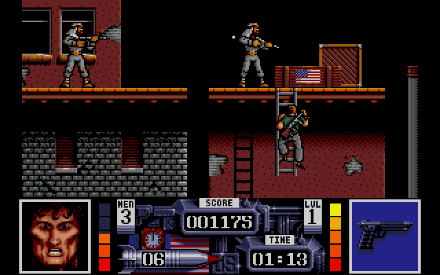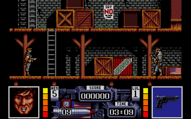 Serve the public thrust, protect the innocent, uphold the law. Hvem husker ikke den legendariske setningen fra RoboCop-filmen som kom i 1987. Alle ville bli som RoboCop, eller jegr ville i alle fall det, og i 1988 fikk jeg muligheten gjennom Robocop spillet til Amiga’n lansert av Ocean. Det er rett og slett fantastisk å kunne ta på seg rollen som Alex Murphy, aka RoboCop, i dette actionfylte spillet. Grafikken, selv om den er ganske grunnleggende etter dagens standarder, har sin egen sjarm og nostalgifaktor, og jeg synes at den var rimelig rå på den tiden. Det er noe ved de pixelerte figurene og de enkle bakgrunnene som er episk. Og lydeffektene? De er ganske enkle, men de gjør jobben og legger til den totale atmosfæren i spillet.
