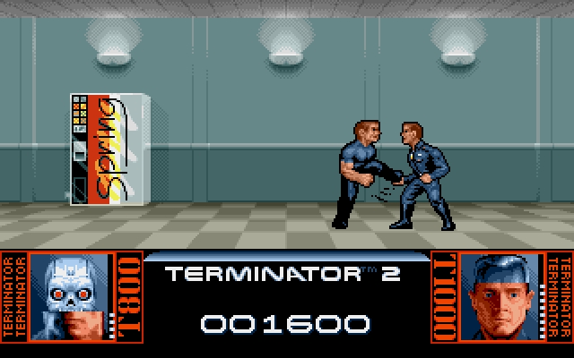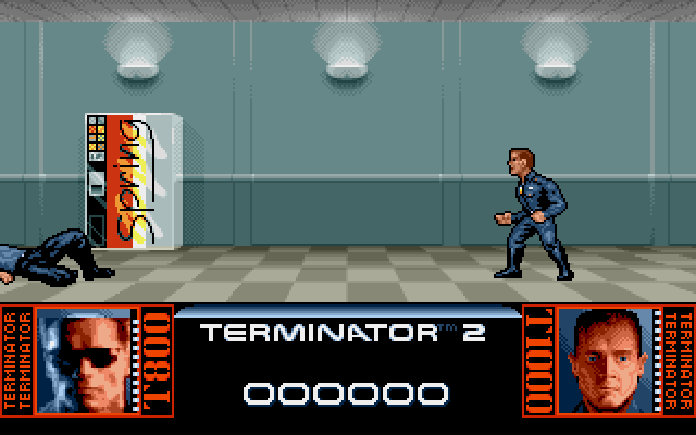 Når du da etter introen starter spillet, så er det et fantastisk lite fengende slossepill som venter. Du skal banke T-1000. Kontrollene her er helt på bærtur, og det er faktisk grusomt. Til å starte med har du også noen kuler i en pistol, men hver gang du skyter T-1000 eller han deg, så dør du/han og kommer opp igjen. Helt til en er fri for ansikt. Se nede til høyre eller venstre i skjermen. Fantastisk lite givende.