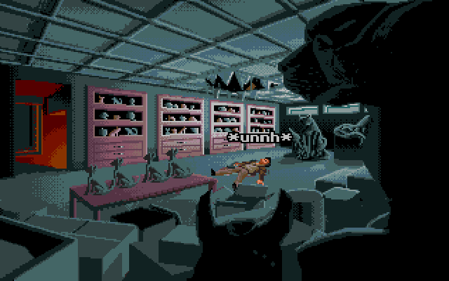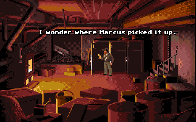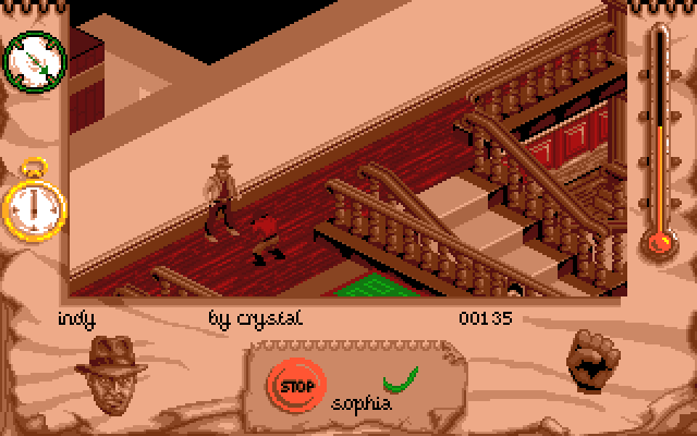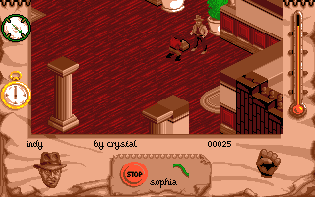 Men spillet fungerer via Amiga Forever, og det må være sagt at introen til spillet er ganske gøy. Indy, stakkar ramler ned gjennom etasjene og ender til slutt opp i kjelleren, akkurat der Retrogamingpappa er mentalt. Før han til slutt finner det han er ute etter, og stikker innom kontoret til Marcus. Der møter han det som etter hvert skal vise seg å være en Nazi-skurk som stikker av med Atlantis-artefakten Jones har funnet. Noe særlig mer enn det har ikke Retrogamingpappa fått spilt ennå. Men finner han veien ut av kjelleren så skal det spilles litt til.