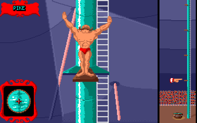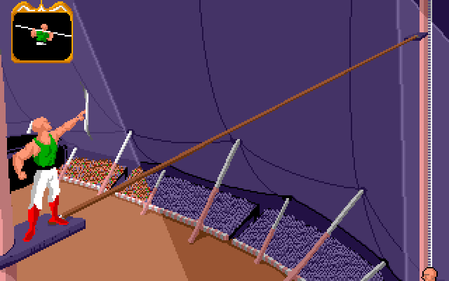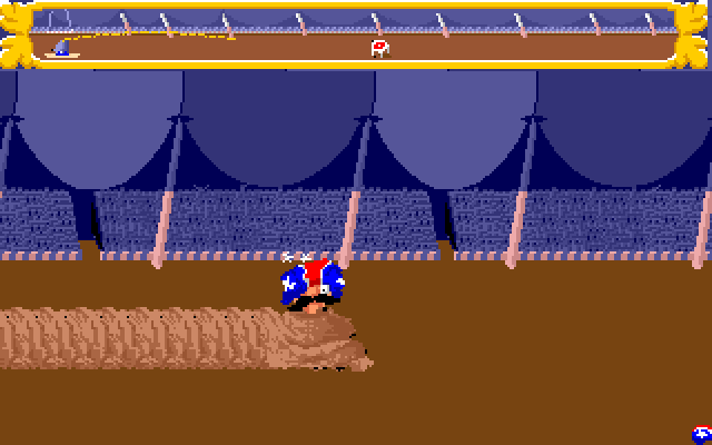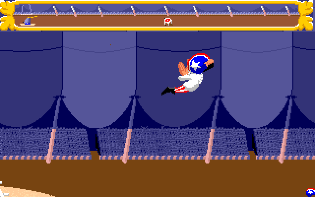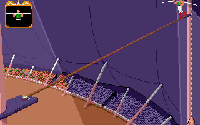 I spillet får man flere forsøk i motsetning til hva man ville gjort hvis dette var på ekte. Hver gang må man sikte på bøtte, og strekke seg ut i det man møter den. Men underveis er det en liten klovn som prøver å sabotere ved å blåse oss bort. Jeg mistenker at dette er en klovn sendt fra den grådige banken. Han klarer ikke å forstyrre oss første gang, for da treffer vi faktisk bollen og overlever. Andre gang går det litt verre. Vi traff bakken, men ikke bøtta.