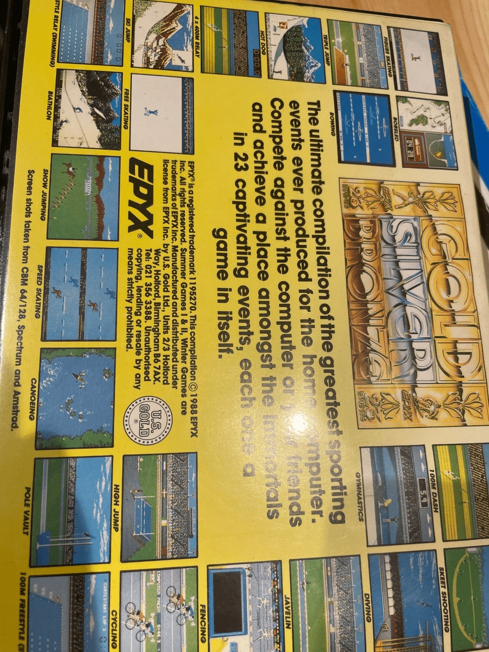 Det nærmeste vi kommer av bilder her er Commodore 64 boks med feil innhold, bilder fra Åpning og avsluttningssermonien. Og den eneste øvelse Retrogamingpappa giddet å prøve seg på.