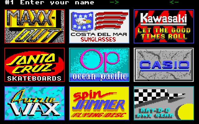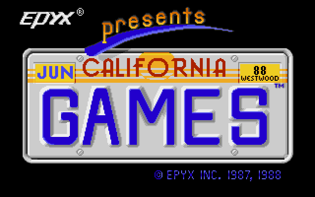 Samme opplegg som med Summer og Winter Games, bare at det nok ikke er noe spesielt som heter California Games IRL (Amiga Amigo – X-Games er vel en grei analogi i dag?). Og i stedet for å velge nasjon, så velger du en kul sponsor. Så når det kommer til øvelsene, så er de kanskje veldig califioriske av seg, og det er nok her navnet kommer inn.