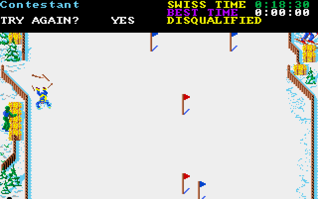 Ski or Die er Elactronic Arts utfordrer i denne kategorien. De har et like flott 90-talls look som California Games, men er enda bedre på humor. Når du starter Downhill Blitz, blir du droppet med helikopter, og lager et stort hull i bakken. Retrogamingpappa lo. Det er lenge siden sist Retrogamingpappa lo.