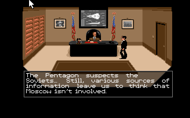 Vi ender opp på kontoret til en storkar i etterretningen, og vi blir briefet av direktøren om at et topphemmelig stealthfly er stjålet.