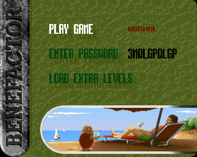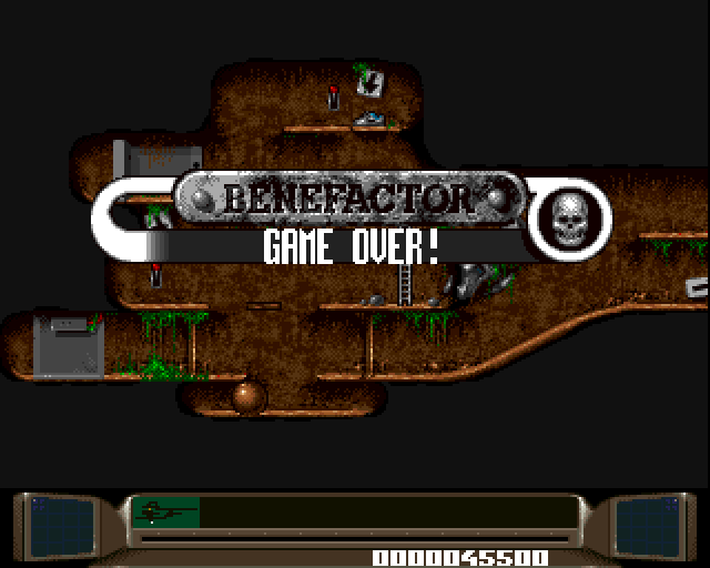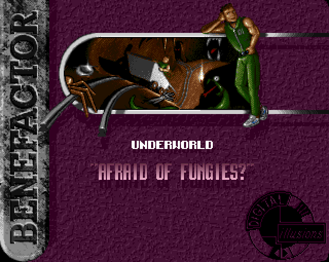 Benefactor er laget av Digital Illusions, og kommer dermed ut veldig skjevt fra hoppkanten til Retrogamingpappa. Som noen av dere er klar over skjønner hen ikke poenget med sånne flipperspill. Men det skal jo ikke stoppe testen av Benefactor. Men for å si det sånn, det lover jo ikke veldig bra. Vi får gjøre oss ferdig med denne.