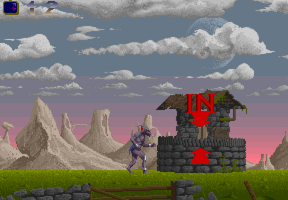 Men jeg er ikke Retrogamingpappa, så jeg prøver igjen! Denne gangen løper jeg den andre veien. Her er alt mye lettere, og jeg finner et tre med en dør i. Jeg går inn, og kommer ned i et hulesystem. Et feiltimet hopp senere, og beistet mitt blir spiddet. Umiddelbar «game over!»