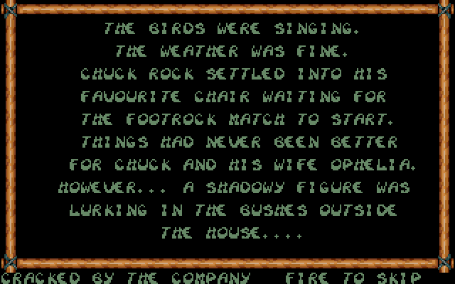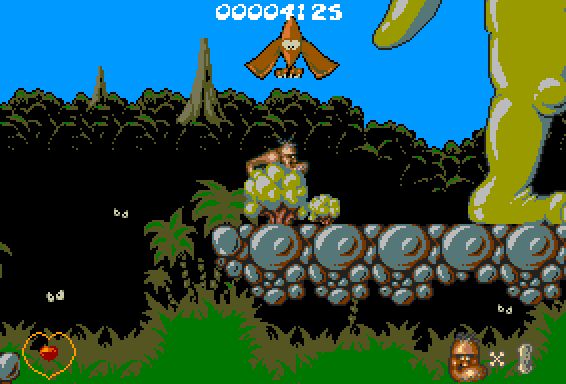 Spillet er forresten noe som jeg føler hører mer hjemme i en Commodore 64-kåring, men det er nok mange som har gode minner knyttet til denne tittelen fra Core Design. Spillet er som kjent en skrollende Giana Sisters-klone som har vokst opp som et stebarn i hjemmet til familien Sierra Online. Tre av fire brett starter med at noen skyter på deg umiddelbart, en rabiat hund kommer springende mot deg eller en stor rullende stein skal lage pannekake av deg. Heldigvis starter man med seks liv, så her har man rikelig med muligheter til å bli forbannet umiddelbart etter at spillet har begynt igjen. Dersom du har lest noe av det Retrogamingpappa har skrevet til nå i serien, så antar du nok med rette at spillet ikke fikk terningkast 6 og ei ble gjennomført fra A til Å.