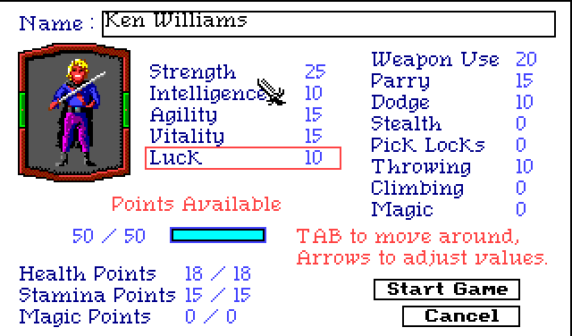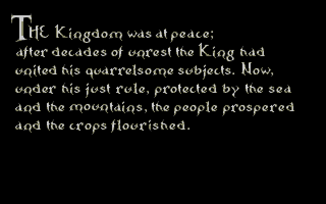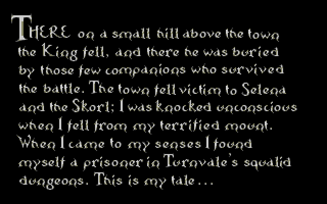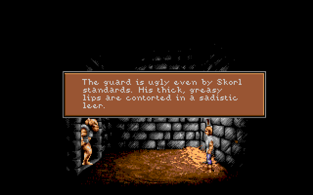 Også kjent som “Quest for Glory 1”, var Hero’s Quest en av godbitene for oss som var RP-fans på slutten av åttitallet. Det kom først ut i EGA-versjon, som senere ble nedgradert til en point’n’click variant, riktignok med VGA, men vi som likte å bruke det utemmede interfacet til et tastatur for å få fremdrift i spillet, syns point’n’click var noe uttøy. Bedre å kunne skrive nøyaktig hva man ville, selv om man ble avvist av AI 80% av gangene.