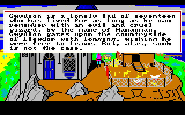 Vel, ting kunne vært verre! Tenk å være 17 år, hete Gwydion, være fanget i et slott av en tvilsom trollmann, og den eneste underholdninga du har er en katt du kan denge med et kosteskaft! Vel, tiden er inne for unge Gwydion – nå skal trollmannen bekjempes, verden utforskes, og det trekkfulle gutterommet hvor en rekke andre unggutter har avgått med døden unnslippes (Seriøst! Det står i manualen at trollmannen pleier å kidnappe smågutter helt ned mot ettårs alder, og pga enorm paranoia dreper han de før de fyller atten og bytter de ut med en ny)! Vel, å rømme er lettere sagt enn gjort. I kjent Sierra-stil, er det mange nådeløst vanskelige oppgaver i vente, og enda flere nådeløse måter å dø på. Roberta Williams hadde sans for artige utganger på livet, og save game-muligheten bør benyttes ofte i ethvert Sierra-spill.
