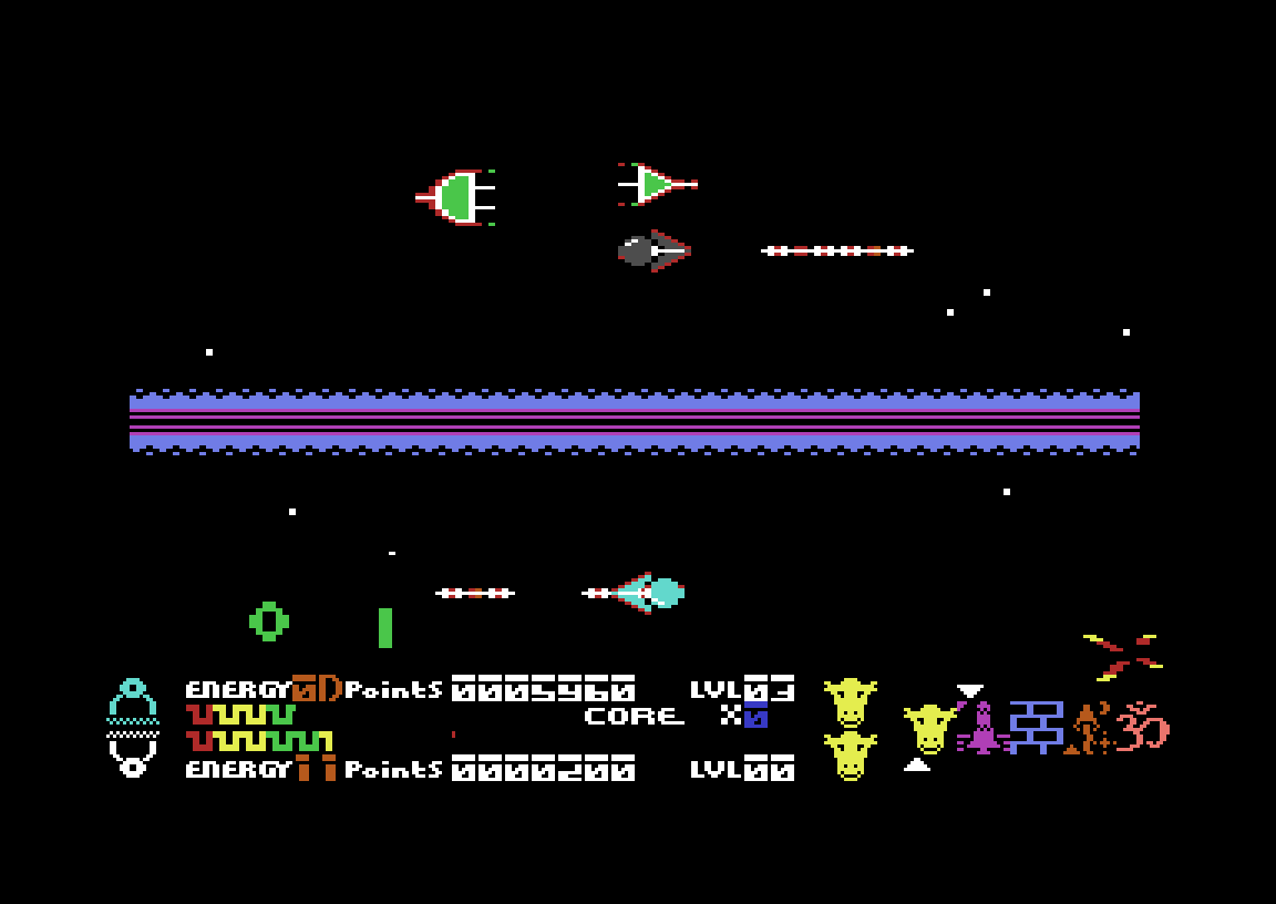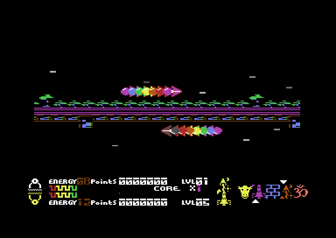 Når du har spilt spillet litt, vil du kunne veksle mellom toppen av skjermen og bunnen av skjermen ved å fly inn i en av ringene mange fiender etterlater seg. Dette må du også gjøre, for hvis ikke vil den delen av skjermen du neglisjerer etter hvert miste all energien sin, og da dør du. Skipet i den delen av skjermen du ikke bruker vil på en måte speile det du gjør, så begge deler av skjermen er hele tiden i bevegelse. Det er fryktelig mye å fokusere på samtidig, her.
