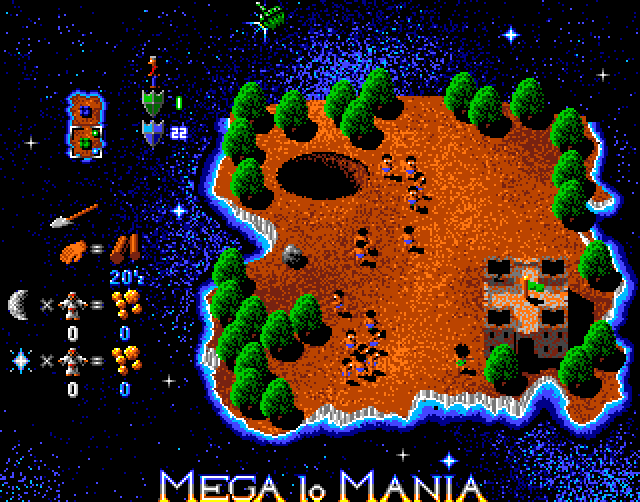 Mega-Lo-Mania er et sanntidsstrategispill fra Sensible Software. Og det har, som det meste Sensible Software laget, et veldig godt rykte. Martin har laget en større artikkel om Mega-Lo-Mania, som redaktøren tenkte han skulle spare til juleferien. Men jeg har knabbet noen utvalgte biter: