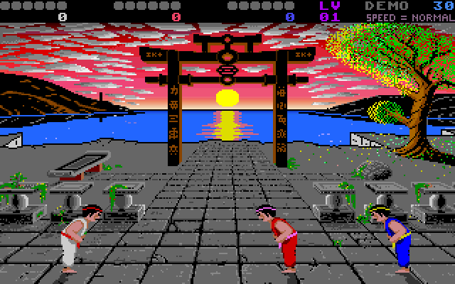 Som en liten tvist i forhold til andre karatespill fra denne tidsepoken, er det her 3 spillere. I alle fall to kan være styrt av spillere. Den som får minst poeng hver runde blir eliminert. Etter hver runde kommer det små minispill som trimmer refleksene dine. Det er et bredt utvalg av slag og spark tilgjengelig, og alt passer perfekt til å spille med joystick og en fungerende knapp.