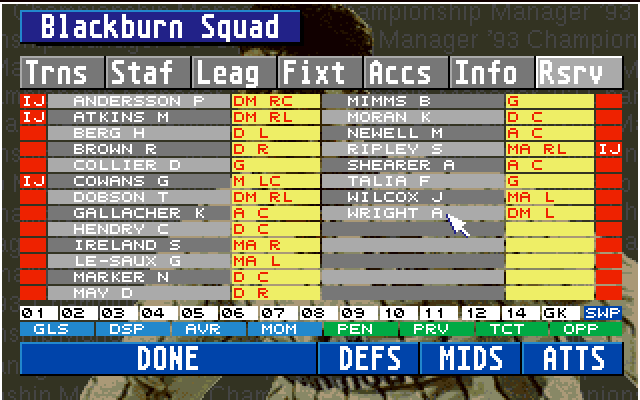 Championship Manager 93 møtte i første kamp The Manager, der ble de en klar seier til hjemmelaget, 75,5% – 24,5%