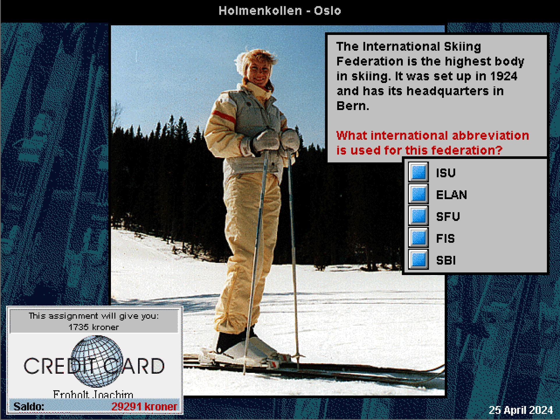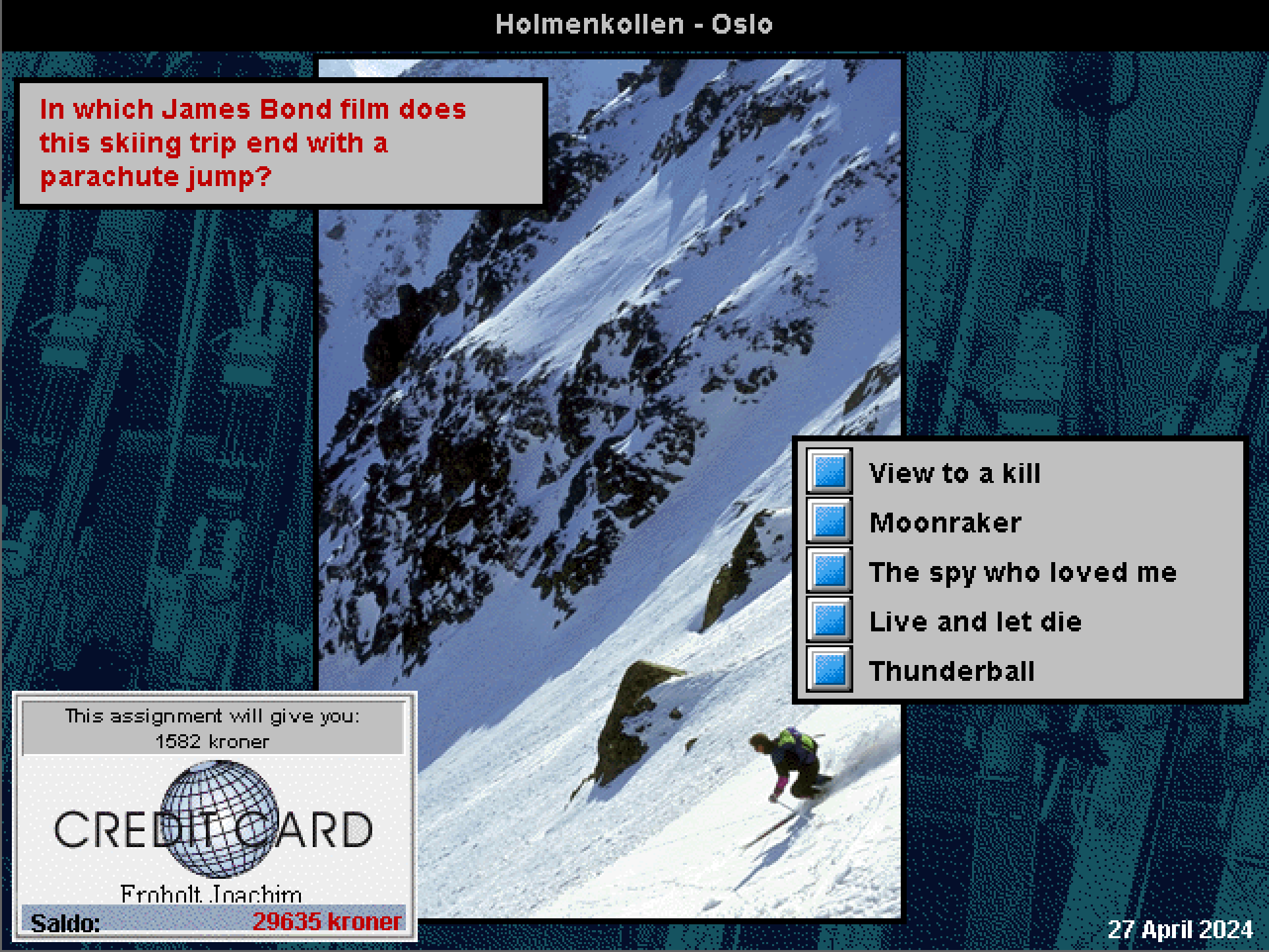 Så må det jo påpekes at hva som regnes som allmennkunnskap i dag ikke er det samme som for 30 år siden. For å ta et brutalt eksempel: Når dette spillet kommer med spørsmål om OL i Grenoble (du vet, da Jentut’n tok gull i stafetten og Ole Ellefsæter flådde utlendingene), tilsvarer det et spørsmål om OL på Lillehammer i dag. Heldigvis holder spillet seg vanligvis unna spørsmål om befolkningstall og slikt, så selv om du ofte må ha «utdatert» kunnskap for å lykkes, er det sjeldent at svarene du må gi er direkte feil i 2024.