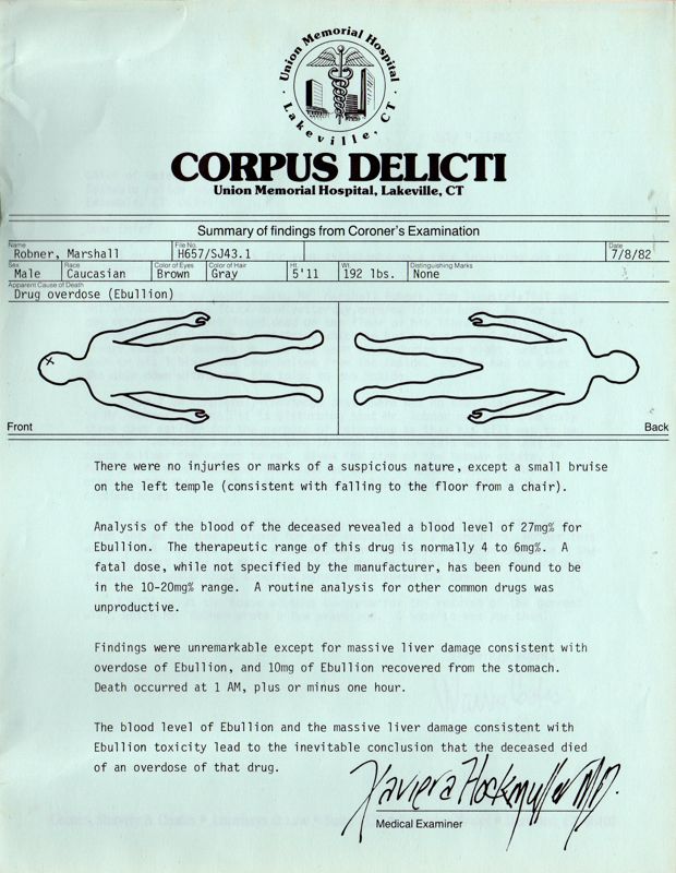 I Deadline har du blitt bedt om å ta en titt på dødsfallet til en riking ved navn Marshall Robner. Rettsmedisinsk har allerede konkludert med at han døde av en overdose med antideppresiva, og det meste peker i retning av selvmord. Han gikk gjennom en tøff tid på grunn av økonomiske problemer, og tilsynelatende også trøbbel i familielivet. Han ble funnet død i biblioteket han brukte som kontor, og døra var låst fra innsiden. Vitneforklaringene indikerer heller ikke at noen kom eller gikk fra huset i løpet av natten han døde.