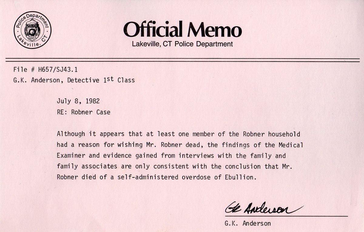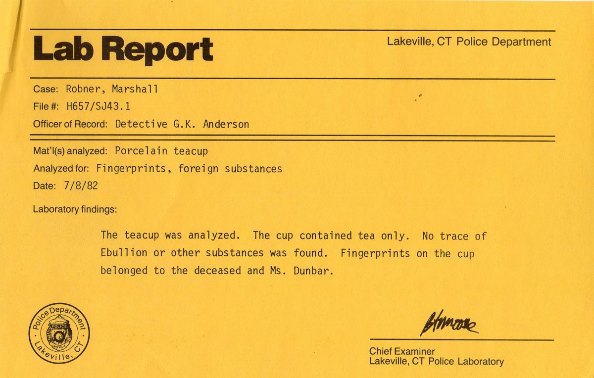 Men det er noen ting som gjør at det kan være lurt å ta en nærmere titt. Marshalls sønn, George, har både gambling- og alkoholproblemer, og faren snakket om å gjøre ham arveløs. En stor krangel for få dager siden endte med trusler begge veier. Kona, Leslie, hadde et kjølig forhold til sin mann og har muligens også en elsker. Det var også uenigheter mellom Robner og forretningspartneren hans, Baxter, som i avhør sa rett ut at han håpet å kunne få selskapet på rett kjøl nå som Robner ikke lenger sto i veien for avgjørelsene han ønsket å ta.