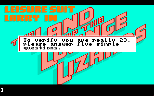 Spillet starter som kjent med en quiz, der de som ønsker å få tilgang på Larrys pirrende(?) verden blir nødt til å svare på noen spørsmål for å se om de er gamle nok.