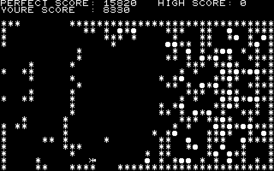 Og så kom Spacefighter, og jommen er det ikke ganske gøy. Så gøy at jeg umiddelbart startet på nytt etter endt spill, ganske mange ganger. Faktisk spilte jeg det først i går kveld, og så – da jeg åpnet emulatoren igjen i kveld for å fortsette utforskingen av kassetten – begynte jeg umiddelbart å spille det igjen.