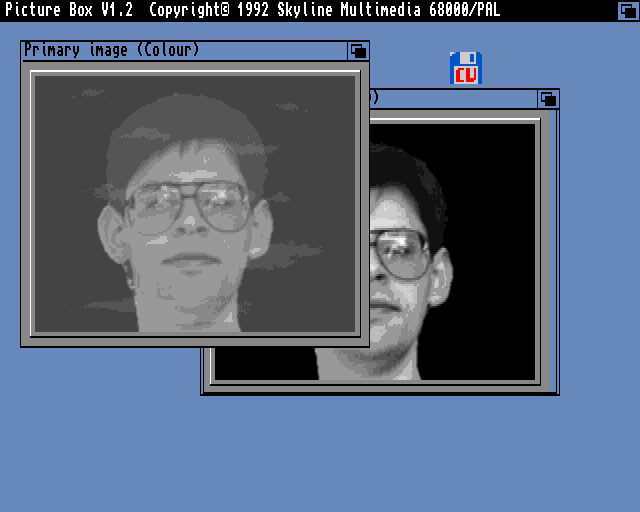 Picture Box er litt mer spennende. Det er et bilderedigeringsprogram som tillater deg å legge inn ulike filtereffekter på bilder, eller kombinere (morfe?) to bilder til ett. Absolutt ikke nyttig i dag, og sikkert ikke så nyttig i 1992 heller, men den langt yngre versjonen av meg ville sikkert brukt litt tid på å se hva slags rare greier jeg kunne gjøre med det om jeg hadde fått teste det.