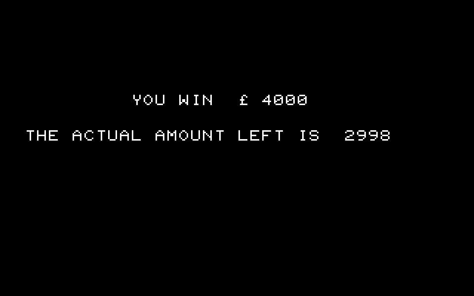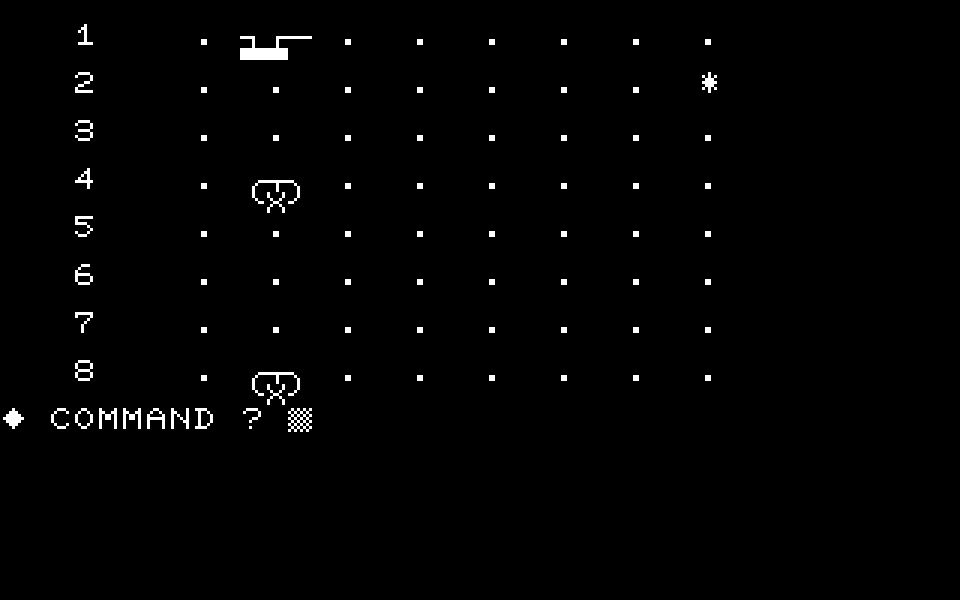 Dette er en helt grei versjon, og det er litt artig å leke kaptein. Absolutt det dypeste og mest intrikate spillet så langt på denne kassetten, og jeg kan se for meg at Sharp MZ-80K-eiere verden over har brukt mange timer i spillets selskap (selv om jeg også mistenker det finnes bedre versjoner på plattformen). For min del var det viktigste å få bekreftet at jeg fortsatt en viss kontroll på denne typen spill.
