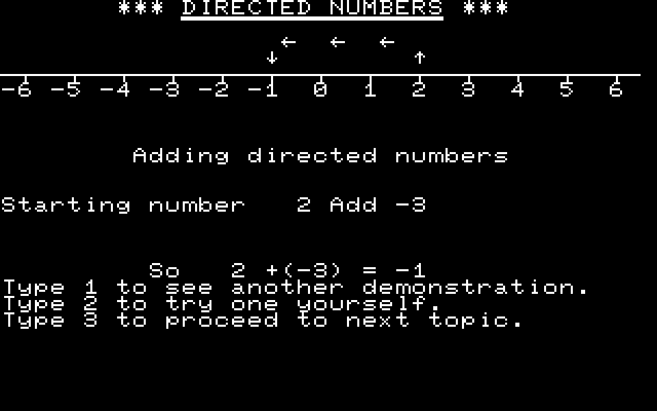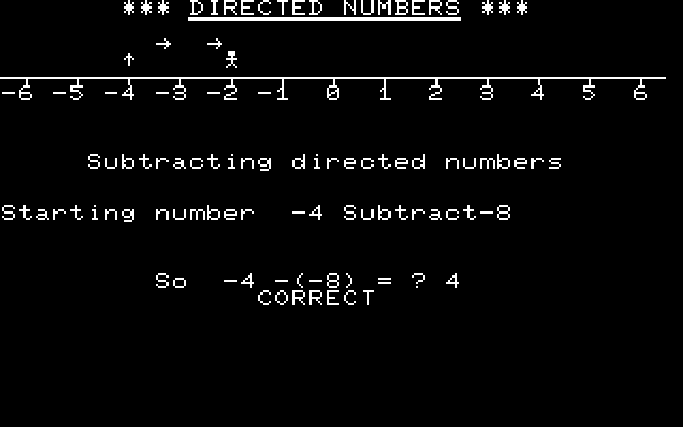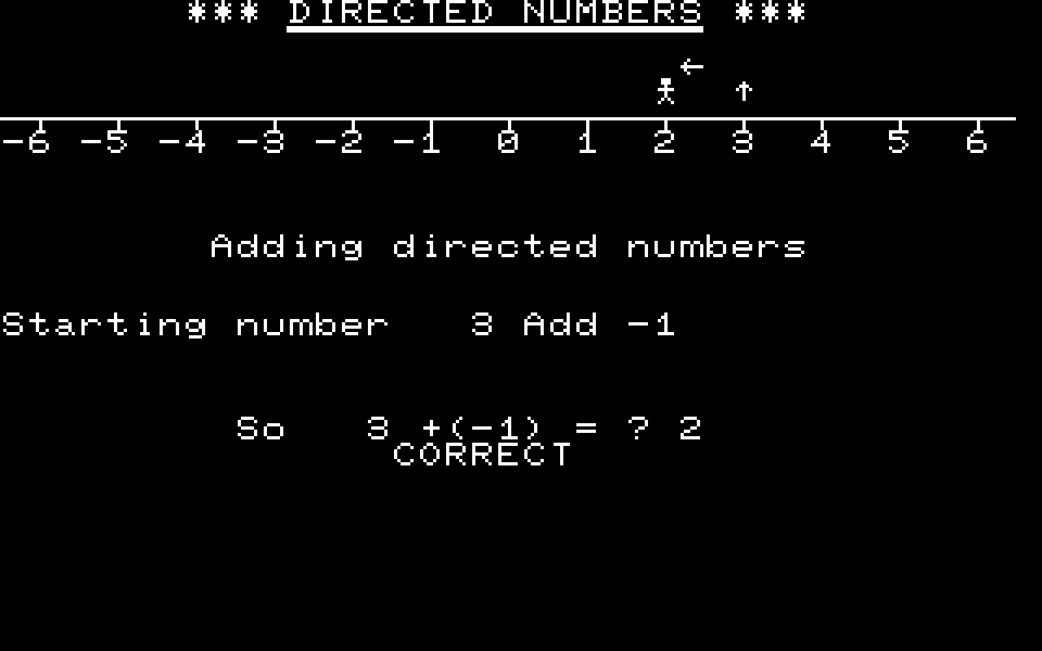 Her har vi et slags læringsverktøy. Spillet prøver å illustrere negative tall kombinert med addisjon og subtraksjon, ved å plassere en mann på det første tallet i regnestykket, som så hopper så mange nummer til høyre eller venstre som neste tall indikerer. Så hvis stykket er 2+ -2, så starter han på 2 og hopper to tall til venstre, der han ender på 0. Du kan se demonstrasjoner, eller prøve regnestykker selv.