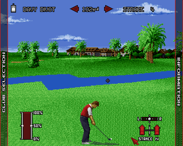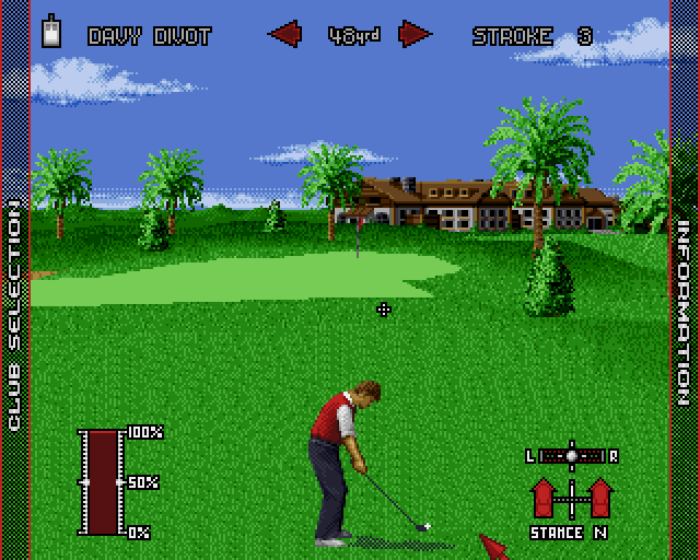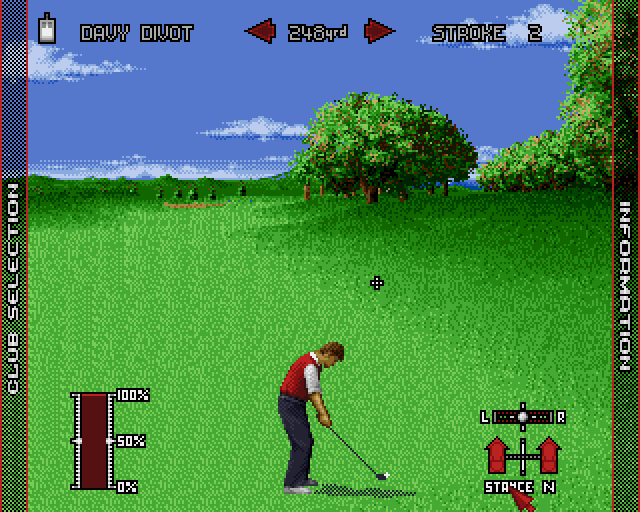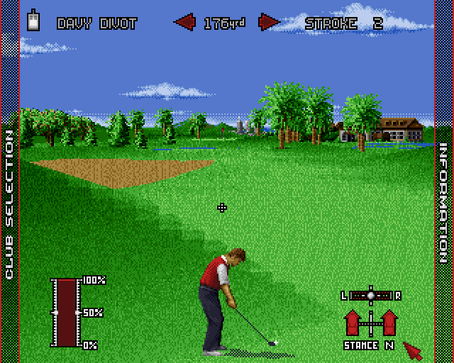 Først og fremst: Dette ser ordentlig flott ut. Det var generelt en greie med golfspill på åtti- og nittitallet; de så flotte ut. Grunnen var enkelt og greit at de kun trengte å tegne opp landskapet én gang per posisjon og vinkel, ikke femti ganger i sekundet. Så golfspill på åtti- og nittitallet var på en måte en indikator på grafikken noen år frem i tid, når maskinvaren ble noen hakk hvassere.