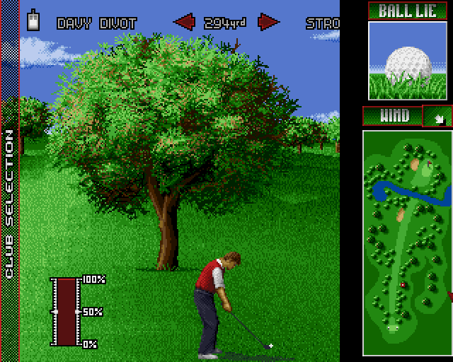 Men dette virker altså som et temmelig solid spill, og sannsynligvis det peneste golfspillet man kunne få fatt i på en standard Amiga uten AGA. Det ser mye penere ut enn Amiga-versjonen av Links, med sin relativt grelle digitaliserte grafikk. PGA European Tour på en AGA-maskin er nok hakket hvassere, men det er noe fryktelig behagelig over pikselkunsten her som jeg virkelig liker, og hele grensesnittet er bare pent.