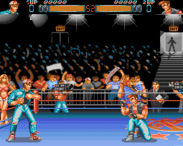Body Blows har nok derfor en fordel rent teknisk. Det er fargerikt, glatt og raskt. Men om det egentlig er så mye bedre enn Amiga-versjonen av Street Fighter 2 vet jeg ikke. Det mangler i alle fall det meste av karismaen, om man kan bruke det ordet, som gjorde Street Fighter 2 så minneverdig. Et godt slåssespill er mer enn to generiske typer som slår og sparker på skjermen.