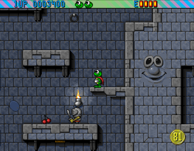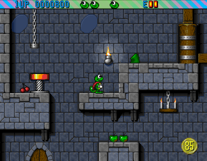 Jeg prøvde først å spille Superfrog-demoen på kvelden etter en tur til den lokale flipperspillklubben, og da var jeg nok litt for gåen i hodet. Så det ble en opplevelse som var mer frustrerende enn moro. Men jeg husket jo som sagt at jeg likte dette spillet i «gamle dager», så jeg prøvde igjen dagen etter, og da gikk det en god del bedre. Spesielt etter at jeg fant en hemmelighet som lot meg hoppe over hele starten av brettet!