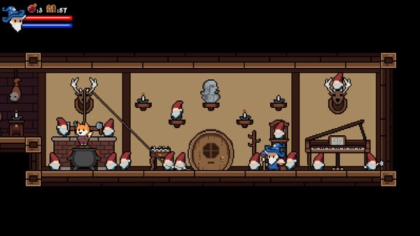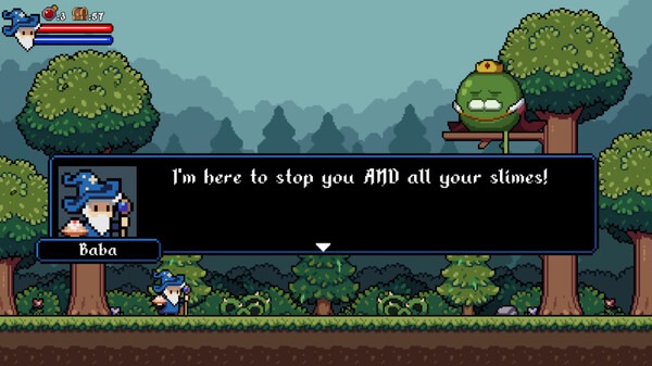 Selvfølgelig! Rune Song er et 2D action/eventyr-plattformspill med fokus på flytende bevegelser i kontrollene, morsom humor og en livlig gjeng med særegne karakterer. Du spiller en ung trollmann ved navn Baba som jobber i besteforeldrenes bakeri. Bakeriet blir ranet av profesjonelle bærtyver, og det er din jobb å spore dem opp! Jeg liker å si at det er en visuell roman forkledd som et plattformspill, for selv om plattform- og nivådesignet står på egne ben, er det virkelige spillet den store mengden valgfrie sideoppdrag, interaksjoner og hemmeligheter som enkelt kan forlenge en nivås spilletid fra ti minutter til godt over en time.