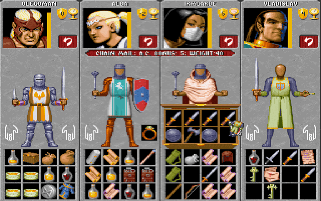 Dette spillet hadde jeg aldri hørt om før, men det er altså enda et rollespill med håpløs historie basert på den andre utgaven av Dungeons & Dragons. Du starter her med to karakterer, og av en eller annen grunn kan du gi dem begge maks i alle egenskaper. Er det en bug? Er det noen ulempe med å gjøre det? Jeg velger uansett to guder, og lar de være fighter og mage.