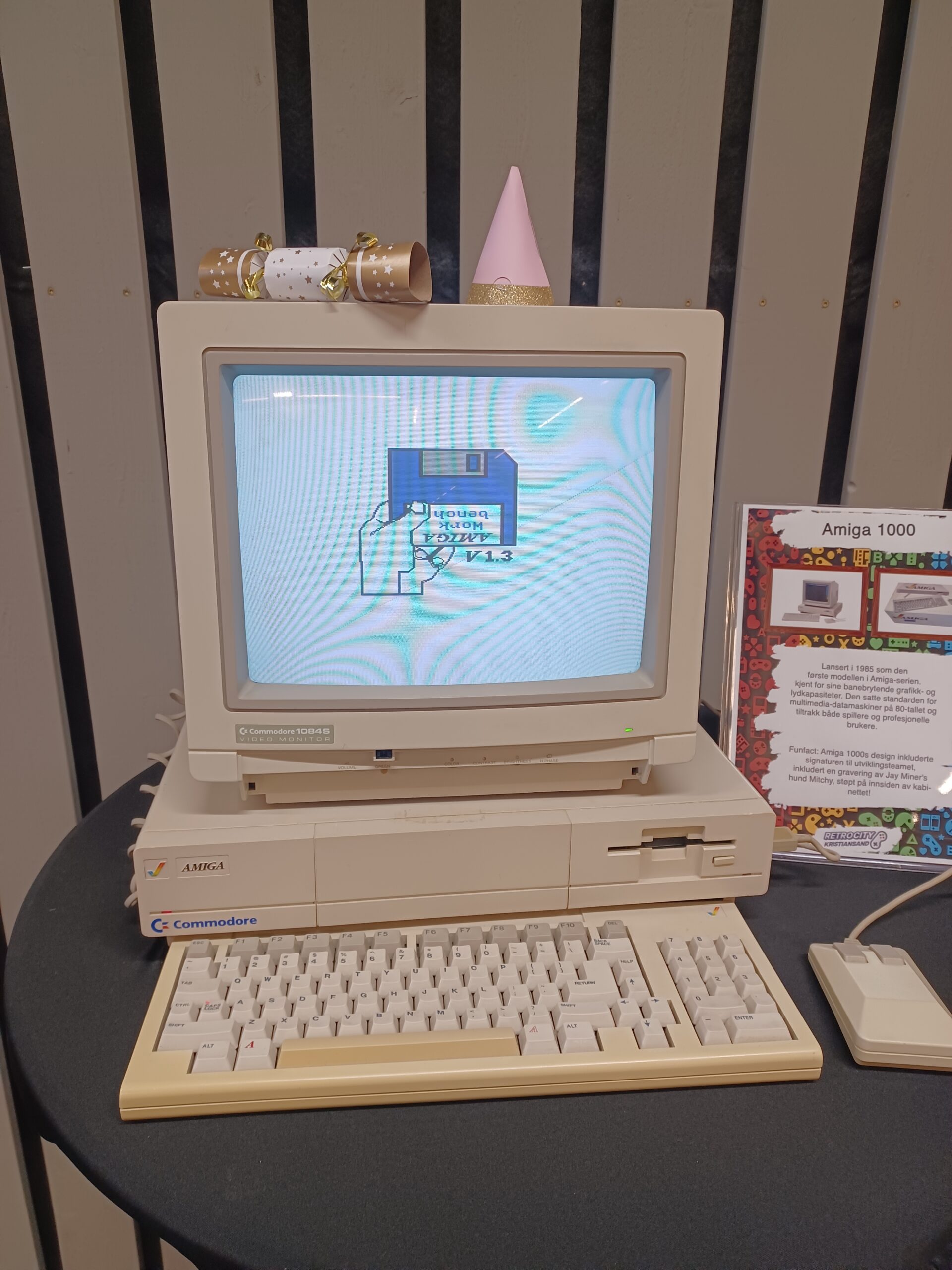 – Amiga fyller jo 40 år i år, og vi var på Amiga40 i Tyskland i midten av oktober, så det var veldig koselig å se at arrangørene hadde laget en veldig imponerende og pen utstilling av alle Amiga-modeller som eksisterer. Amiga 1000 hadde til og med fått en party-hat plassert på monitoren til 40-årsdagen sin. Vi satte også veldig pris på å se Commodore 8096-SK PET med det ikoniske «Porsche-dekselet».