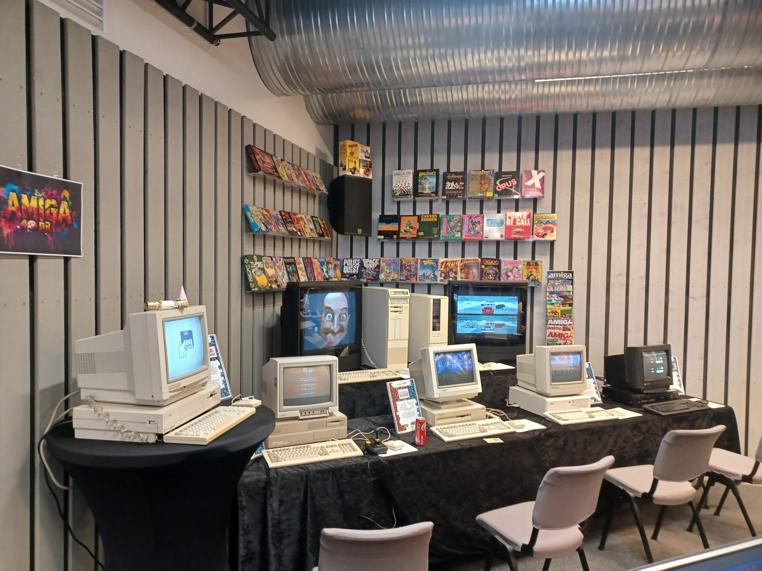 Som fast medlem av High Score – og dermed med ukentlig tilgang på arkade- og flippermaskinene – var det i stedet samlingen av klassiske datamaskiner og konsoller som tiltrakk meg mest. Og som Håkon var inne på, var denne samlingen enorm. Spesielt fokus var det på Commodore-maskiner denne gangen, i forbindelse med Amiga-plattformens 40-årsjubileum. Arrangør Raymond Bryne er stolt over hva de fikk til: