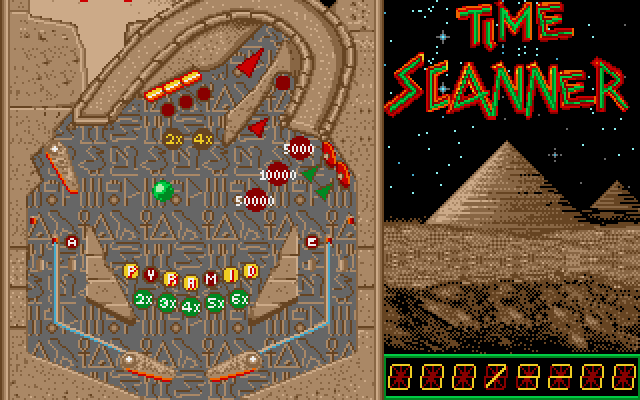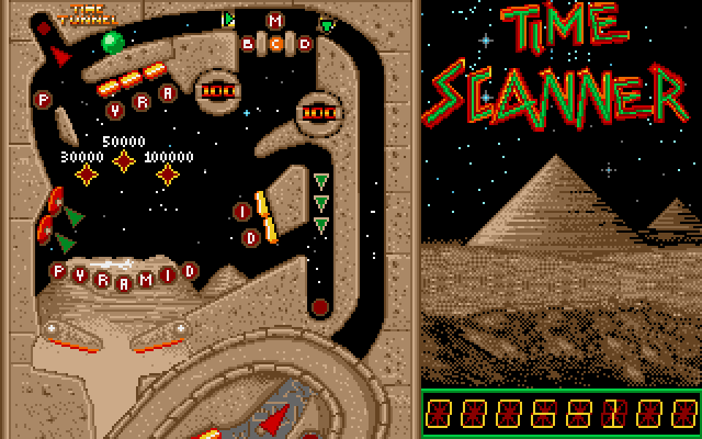 Så langt ser alt fint ut. Time Scanner starter med en småfengende tittelmelodi (inkludert litt tale – «T-T-T-Time Scanner!!») og grafikken er fargerik, med animerte detaljer og det hele. Siden arkadespillet har en vertikalstilt skjerm, bruker Amiga-versjonen kun cirka halve skjermen til flipperspillskjermbildet, mens resten brukes på temakunst og poengtavle. En helt kurant løsning, det blir i praksis som de to forrige spillene i serien (hvis vi ignorerer First Person Pinballs bisarre 3D-modus).