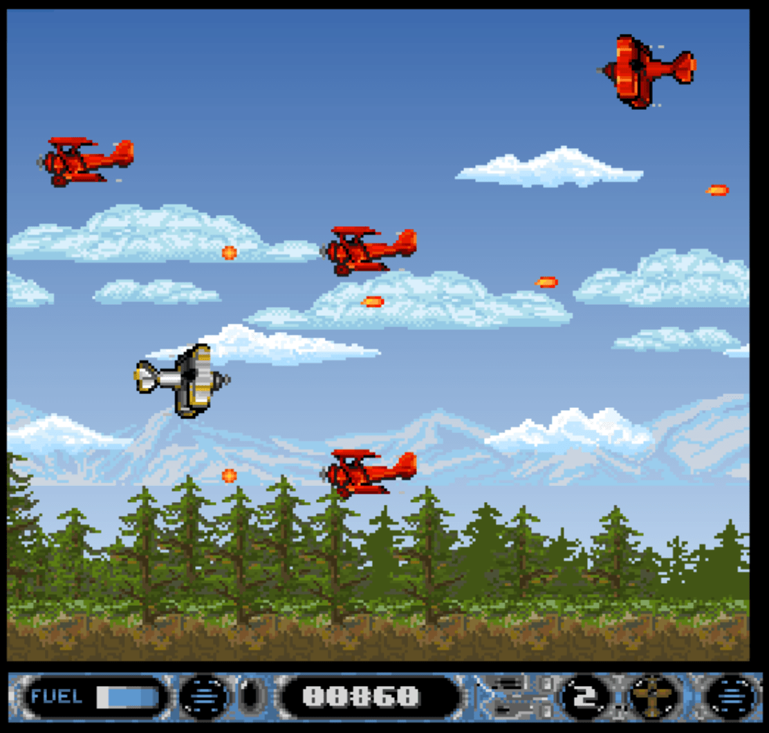 Så nå er det et samarbeid med Mixel`s Lab. Det har gjort at jeg har kunne konsentrer meg enda mer om gameplay, grafikk, animasjoner og laget mer forseggjorte tegninger («game over»-skjerm, tittelskjerm og så videre) Wings of Fear II er et mer avansert spill. Det er parallax-skrolling, du kan både bombe og skyte samtidig, det har små menn du kan «meie ned» og så videre. Dette er mer i tråd med slik jeg ønsket mitt første spill skulle være. Nå er det en pause før jeg fortsetter med level 4!