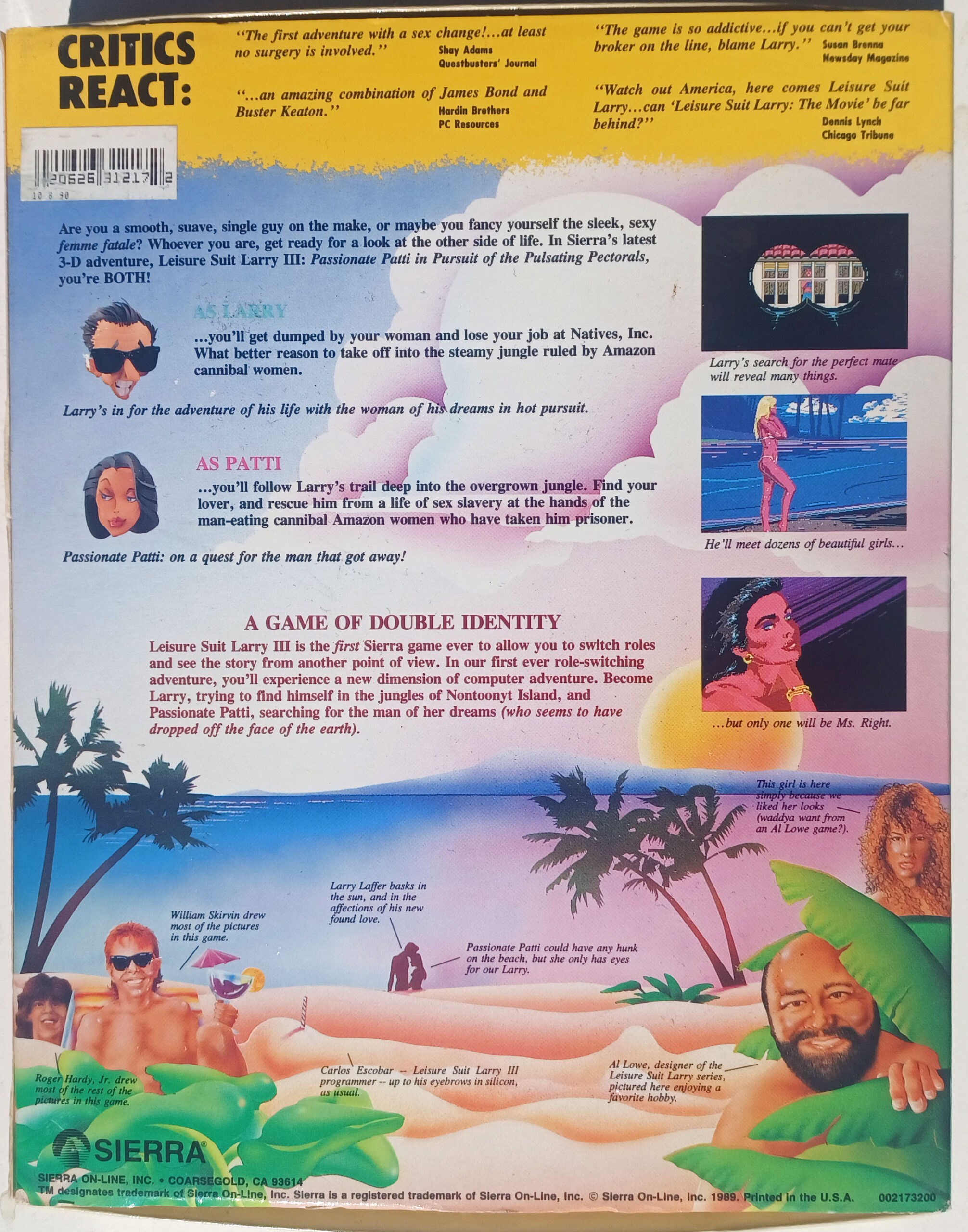 Jeg stiftet først bekjentskap med Larry III mens jeg gikk på ungdomsskolen. En venn hadde fått fatt i Amiga-versjonen, med eske og manual og alt, og siden jeg var storforelsket i Sierra-spillet Quest for Glory var jeg alltid på jakt etter spill som kunne minne om det – i dette tilfellet brukte Larry III samme spillmotor og grensesnitt. At det kanskje var mulig å se en pikselpupp eller to var selvsagt heller ingen ulempe. Så jeg kastet jeg meg over sjansen til å låne det. Men gleden ble kortvarig, for spillet hadde selvsagt en haug av diskfeil som gjorde det umulig å komme særlig langt.