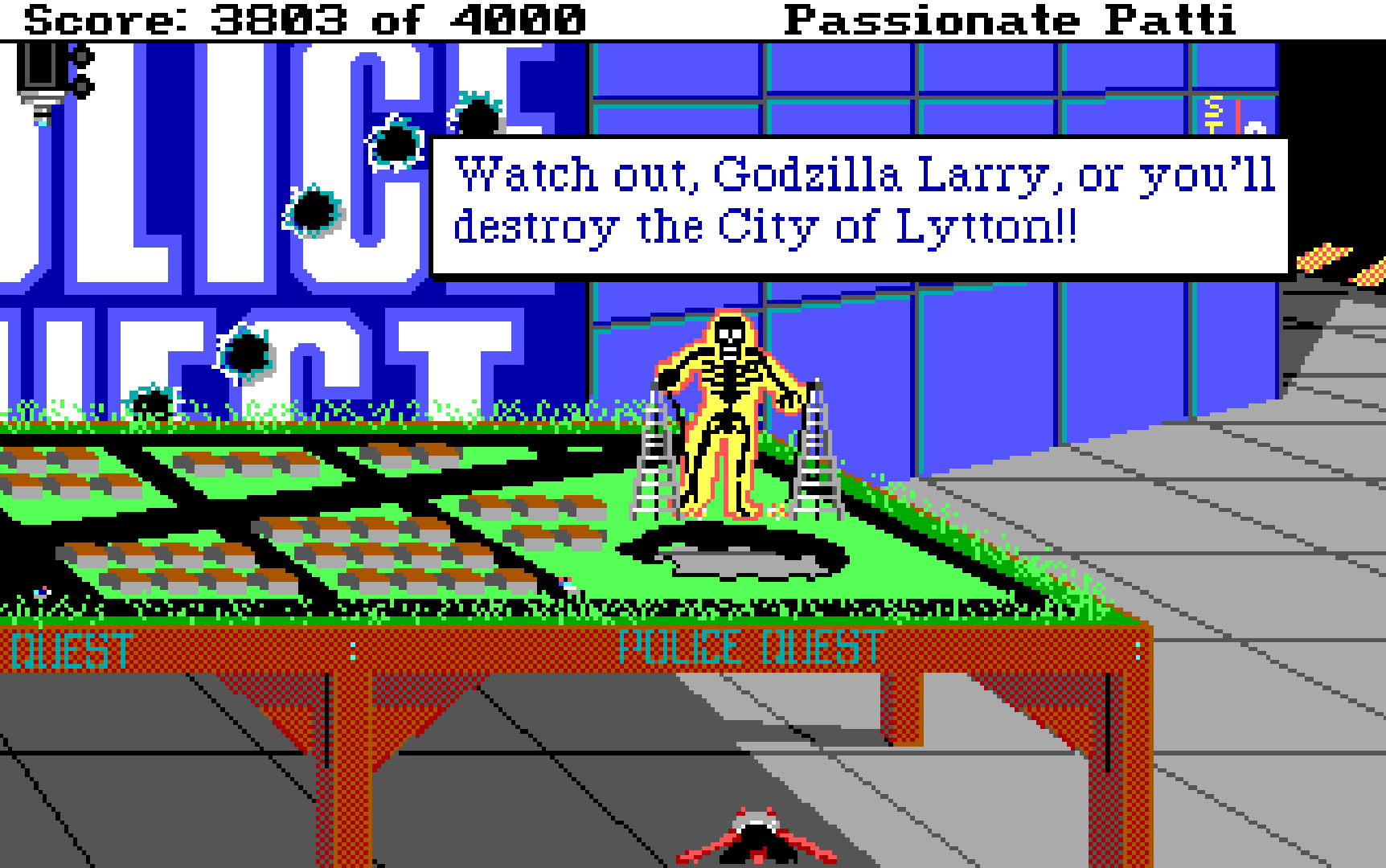 Dette skjedde i Leisure Suit Larry III: Passionate Patti in Pursuit of the Pulsating Pectorals (prøv å si den spilltittelen kjapt fem ganger etter hverandre), som var ment som det siste spillet i serien. Spillet fikk faktisk en så definitiv slutt på Larrys saga at da Sierra fant ut at de ville gjenopplive serien et par år senere, med en ny, kortere og tjukkere Larry, hoppet de rett på Larry 5 for å (blant annet) slippe å forholde seg til alt som måtte ha skjedd mellom spillene for å sette Larry opp for nye jaktmarker.